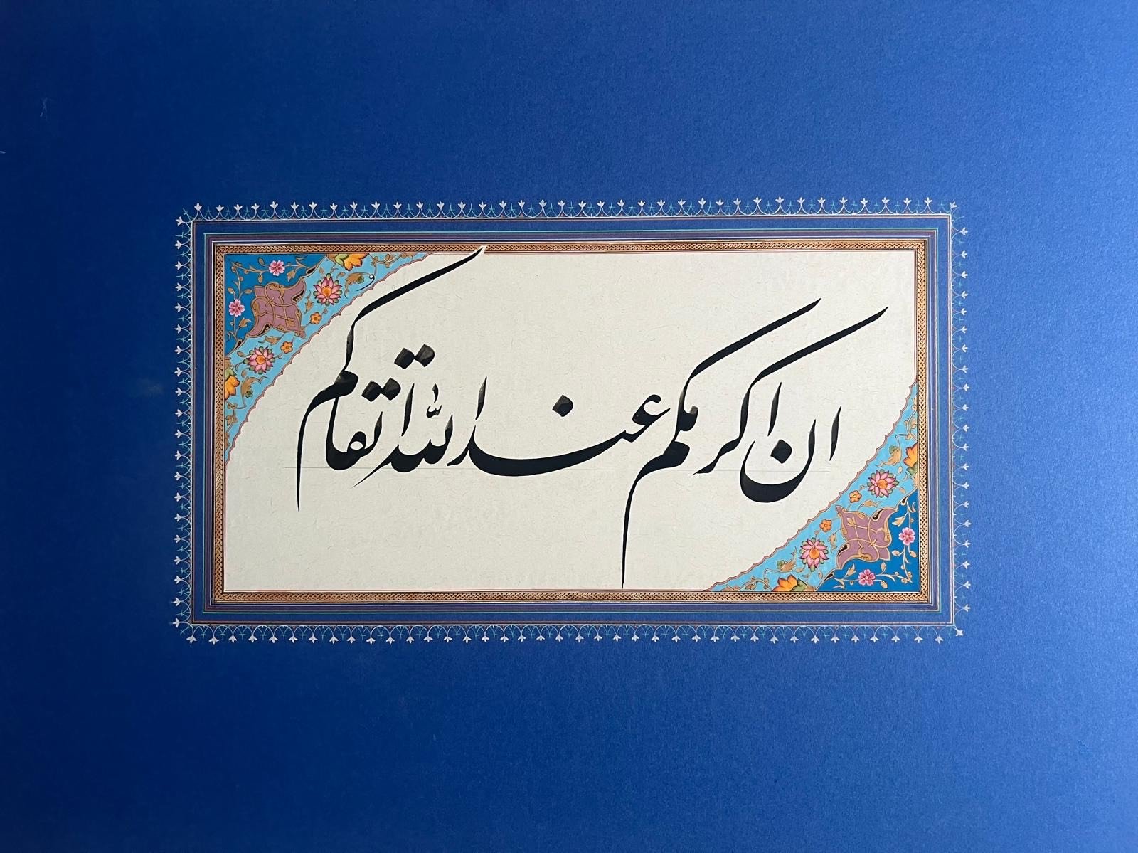 Neda’s creative process begins with great care and reflection, selecting a text that resonates with depth and meaning. She is especially drawn to writings that offer moral insight, timeless wisdom, and emotional richness. Once the text is chosen, she enters an intuitive stage of sketching, shaping, composing and adjusting each curve and stroke until the arrangement finds its most harmonious form. Every piece is a dance between freedom and form, carefully balanced within the principles of Persian calligraphy.